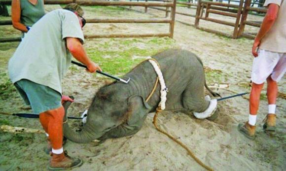 Elefantene fjernes fra mødrene sine når de er veldig små. Noen er også født i fangenskap, mens andre er blitt lokket i en felle ute i naturen. Så begynner prosessen med å bryte de ned mentalt for å tvinge dem til å adlyde. Det kalles Phajaan.