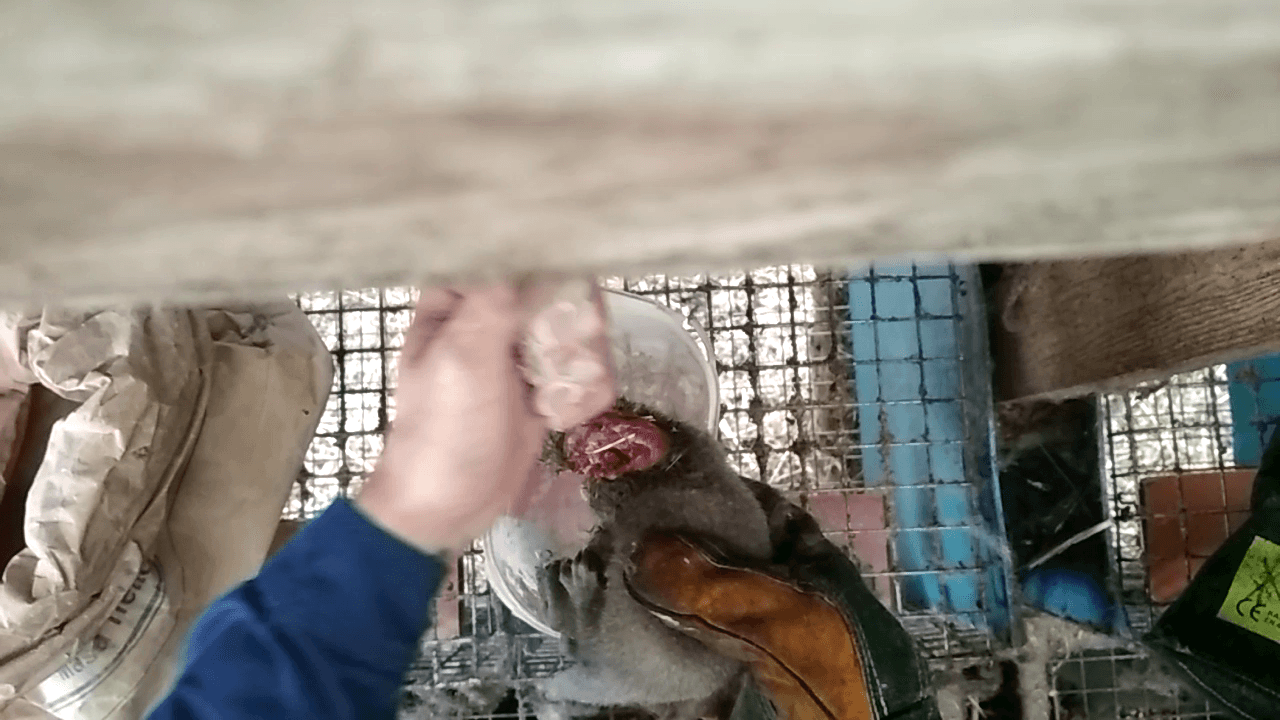 En stor andel av arbeiderne, som Yevhen, kommer fra Ukraina. De jobbet syv dager i uken, over 300 timer per måned. I følge Yevhen jobber det ikke mer enn 50 personer på farmen, noe som betyr at med en tetthet på rundt 500 000 dyr tar én arbeider seg av 10 000 minker. Med antall plikter på gården er det absolutt ingen tid for dyrevelferd, som riktig håndtering av syke og skadde dyr eller rask fjerning av døde dyr fra bur. Dette bekreftes av opptakene som ble samlet inn i løpet av de to månedene Yevhen jobbet på farmen.